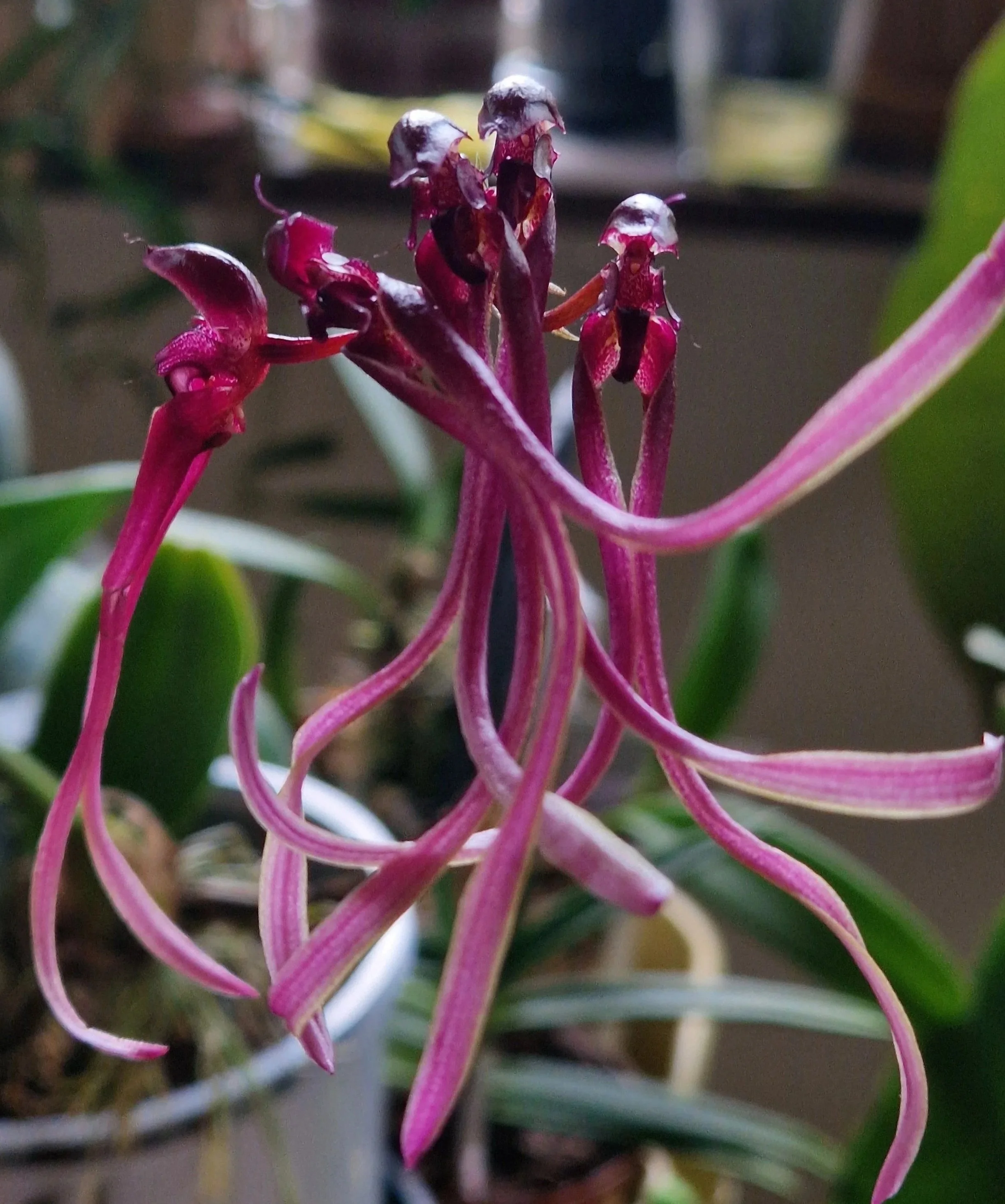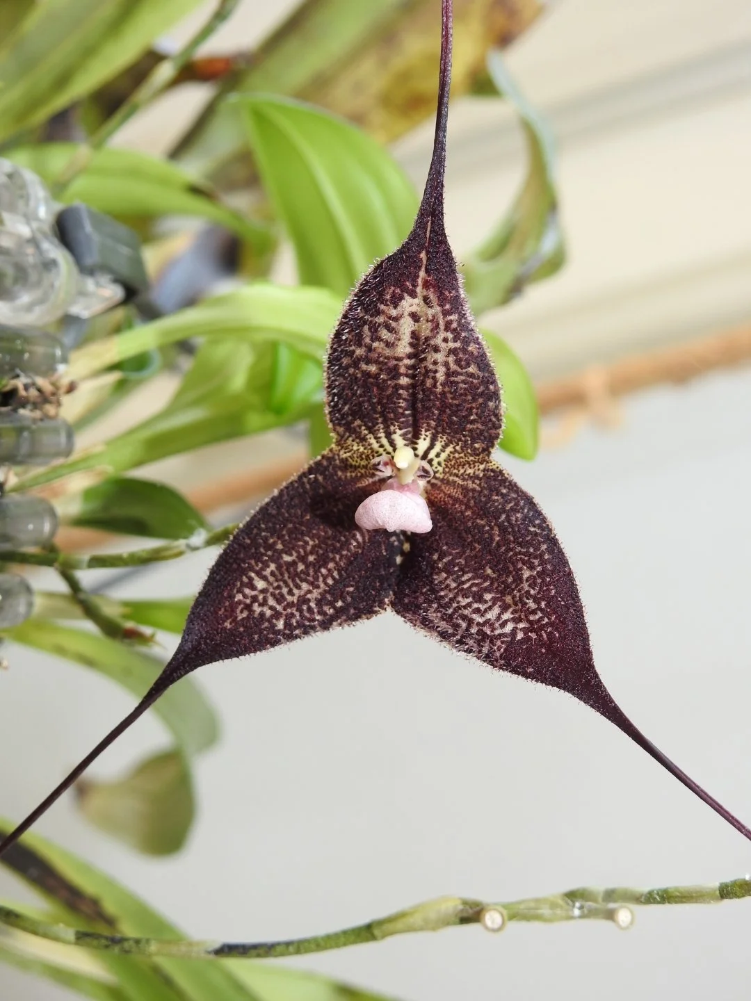 My Bulbophyllum delitescens flowered indoors and within hours the room had filled with hundreds of carrion flies — appearing seemingly from nowhere. I did not smell the flower myself. I did not need to. The flies told me everything. Hundreds of them, converging to the same area, following a signal I could not detect but they absolutely could. The plant was doing exactly what it evolved to do.